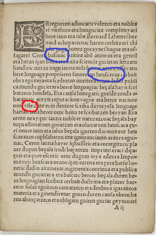 Euskaraz idatzitako lehen liburuan “basko” eta “heuskara”