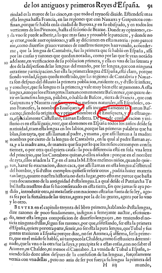 Idazle mondrauetarrak 1571.ean Amberes argitaratu zuen “Los XL libros d’el compendio historial de las chronicas y vniuersal Historia de todos los reynos de España” liburuan aipatu zuen euskaldunok gure hizkuntzari deitzen diogun modua eta erabili zuen forma “enusquera” da.