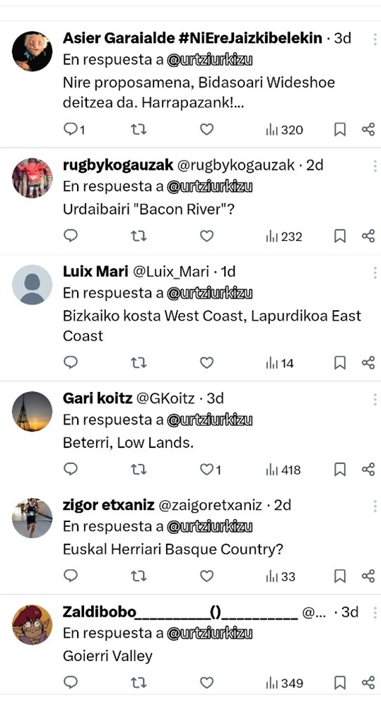 Nahiko barre egin dute zenbait ixalarik Gipuzkoako Goierri-ri Basque Highlands deitzen diotelako. Bitartean sugeritzen zuten, txantetan noski, zergaitik ez zaion esango Goierri Valley edo Urdaibai-ri Bacon River.