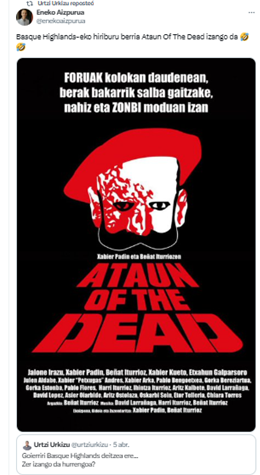 Eneko Aizpurua-ren, @enekoaizpurua, hau ere, ez da makala: “Basque Highlands-eko hiriburu berria Ataun Of The Dead izango da”