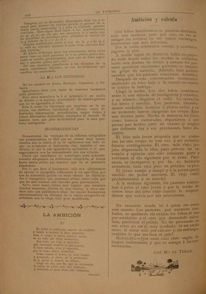 “Por de pronto se atiende a la reconstrucción del idioma. Se crean cátedras de enseñanza del basko…”